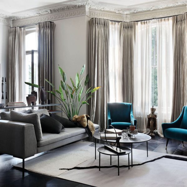 單位客飯廳較長,令陽光未能穿透整個空間,設計師特別利用燈槽,一方面平衡光線,另一方面營造簡潔風格。為免單位過分單調,設計師透過運用冷色作為主調,並配上強烈色彩的設計師傢俱,貫設出時尚型格的一面。